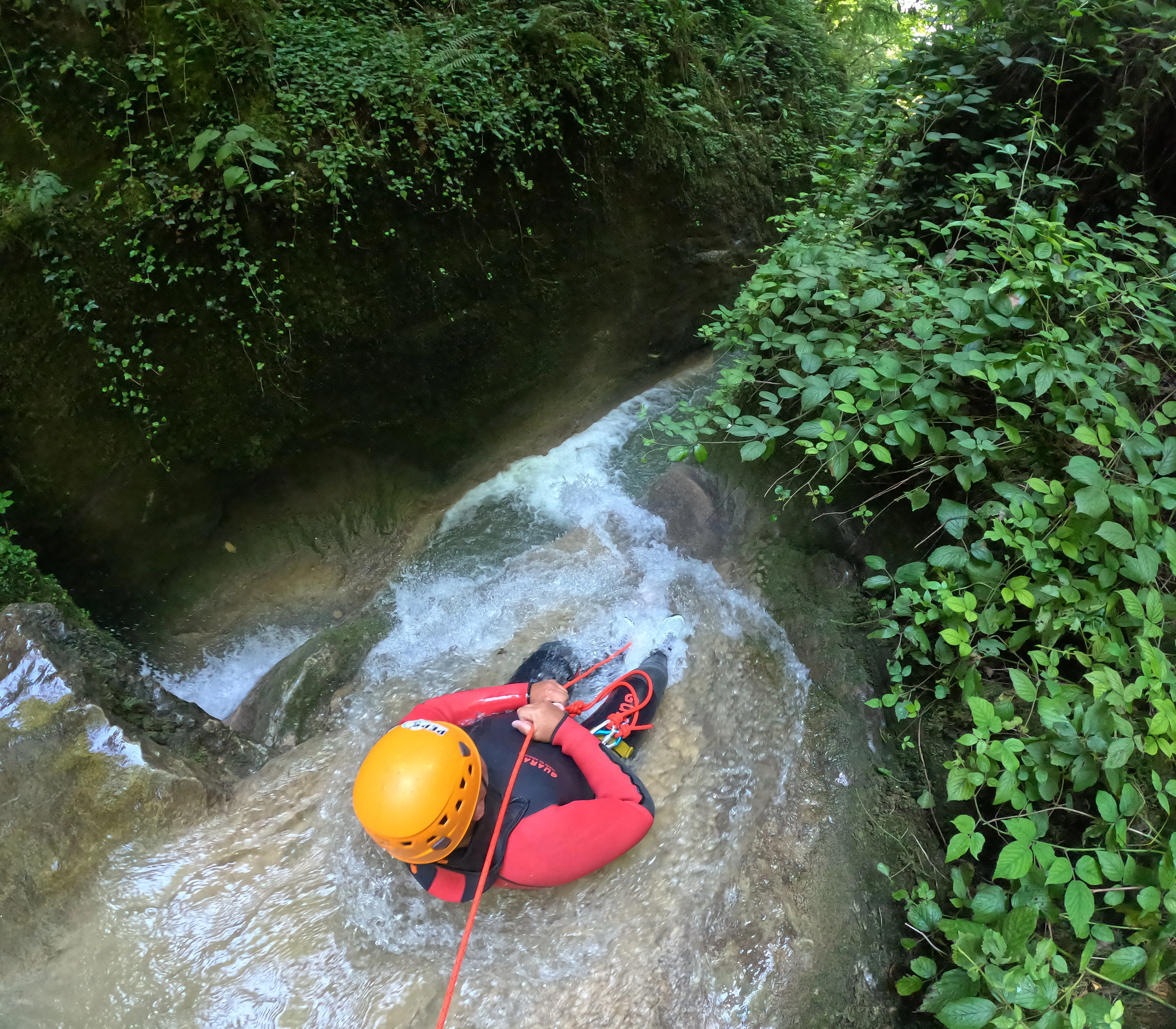 Tous les sauts sont facultatifs et chaque obstacle dispose d'une alternative à pied ou en rappel. La descente s'adapte au niveau du groupe, du plus prudent au plus joueur. C'est la philosophie Pep'S Nature : du plaisir pour tout le monde, sans pression. 😄